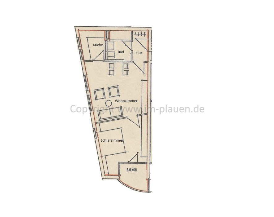 Auerbach - 2 Zimmerwohnung in Auerbach zur Miete - Nicolaipassage - Dusche - Balkon - Einbauküche