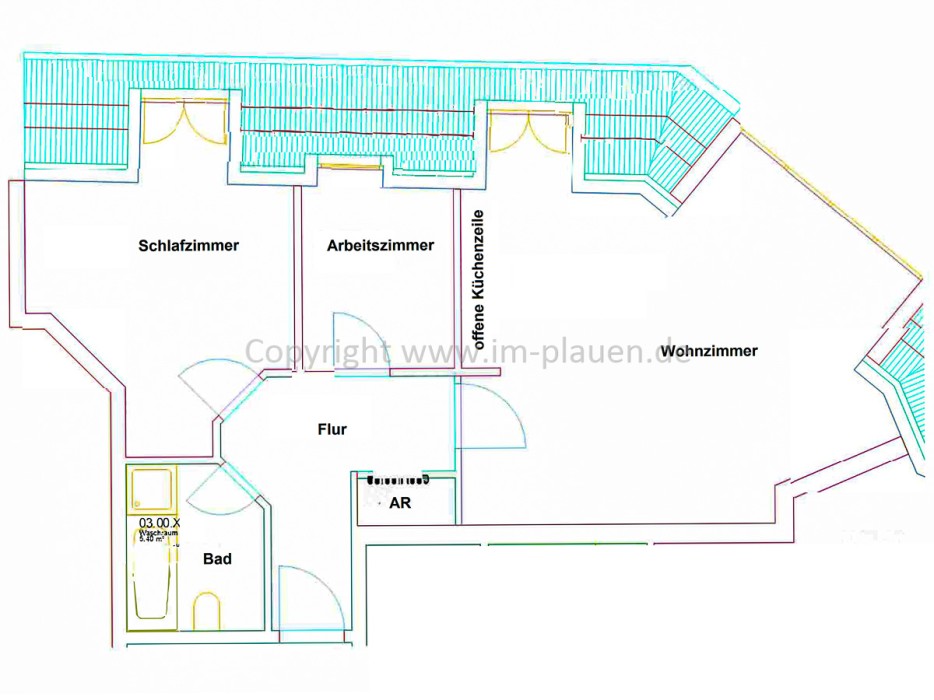 MedienDSL Anschluss in der Wohnung (übliche Bandbreitenversorgung durch Telekom ca. 16Mbits DSL - über Stadtwerke Strom Plauen bis zu 100Mbits) / Kabelfernsehen über Pyur möglich