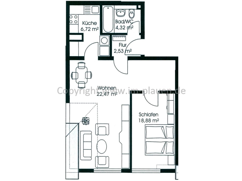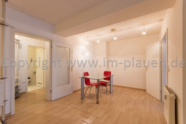 • Wohnung ist teilmöbliert mit: - EBK / Lampen / Glastisch / Stühle und offenem Schrankregalsystem