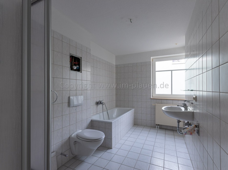 Badezimmermit Fenster und Badewanne ausgestattet / Stellmöglichkeit für eine Waschmaschine ist gegeben